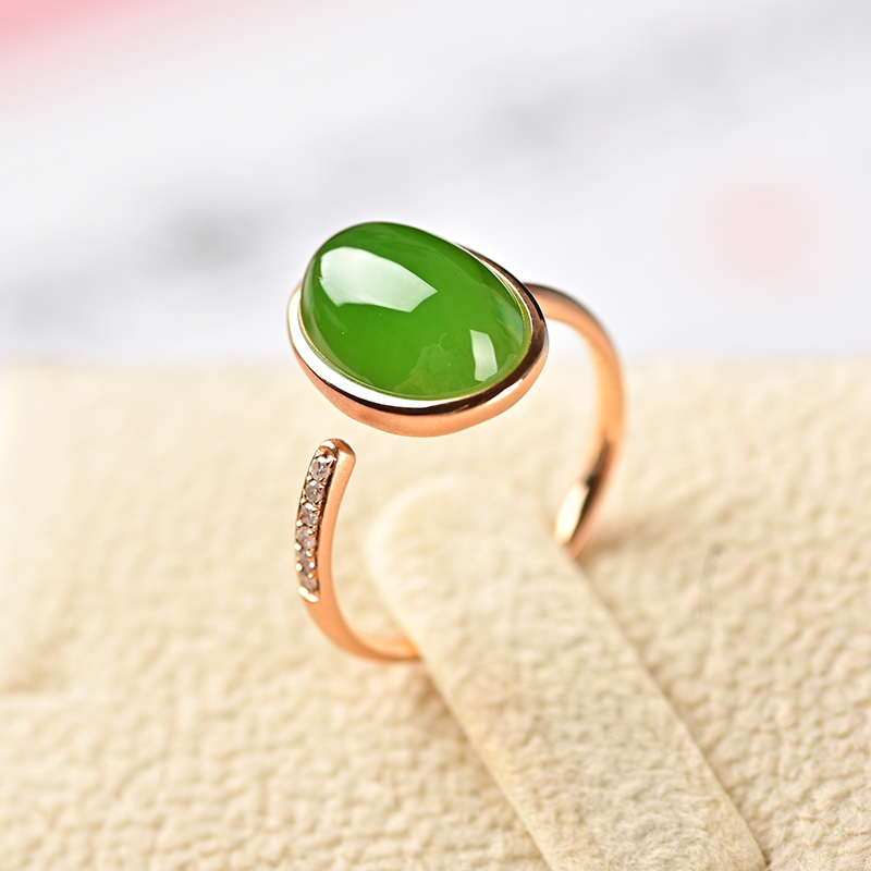 碧波碧玉金镶戒指