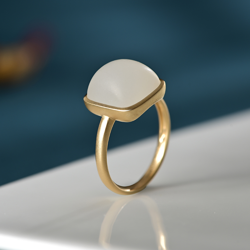 蛋面白玉金镶戒指