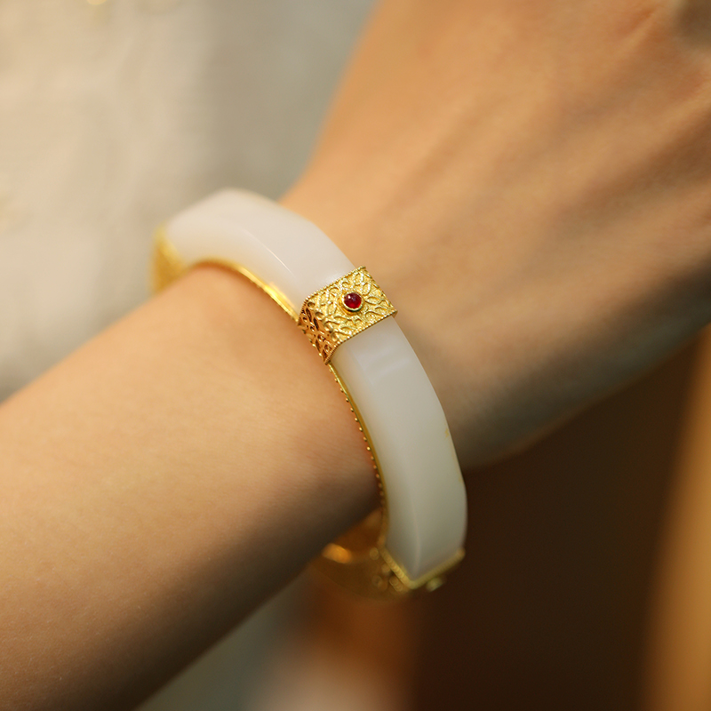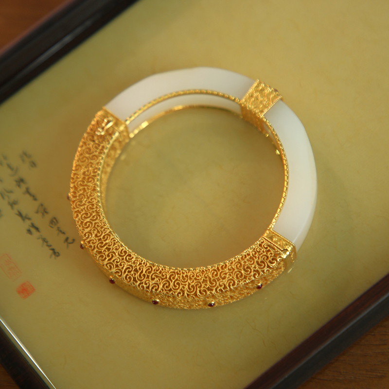 和田白玉金镶手镯